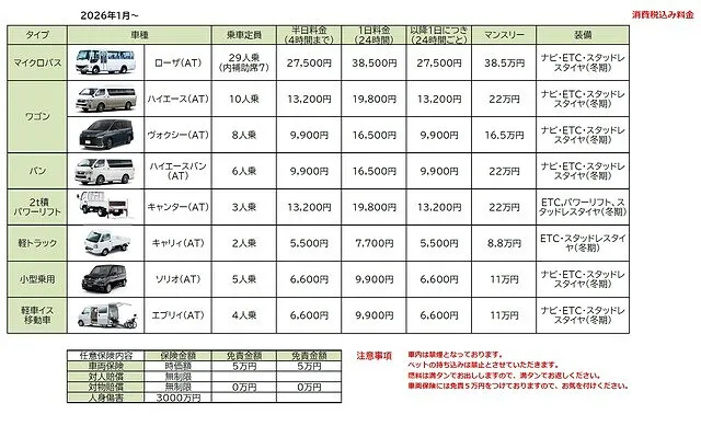 もちろん全車加入済でレンタカー代に保険料も含まれております。